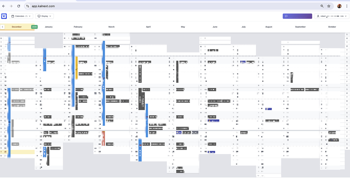 For me this is where I used various systems and found that I like to look at my Planning Calendar a lot. In fact, my assistant and I used it as the primary tool to keep co-ordinated and in sync. A Planning Calendar is best viewed as a planner, Google doesn't have a good way to do this. Initially I used visual-planner | Google Calendar Year View, which is free but recently upgraded to Kalnext to do this Google Calendar Year View - Ultimate Yearly Planning Tool | Kalnext . The team at Kalnext have been incorporating my feature requests and itās quite awesome now, do check it out! (notice that it looks a lot like my old UTS planner above!)
