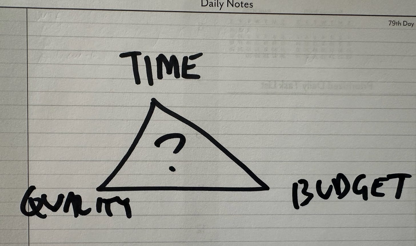 You’ve heard it a thousand times. Someone draws a triangle on a whiteboard — Budget, Quality, Timeline — and says with a knowing smirk: “Pick two.”